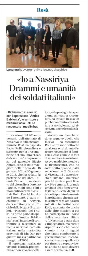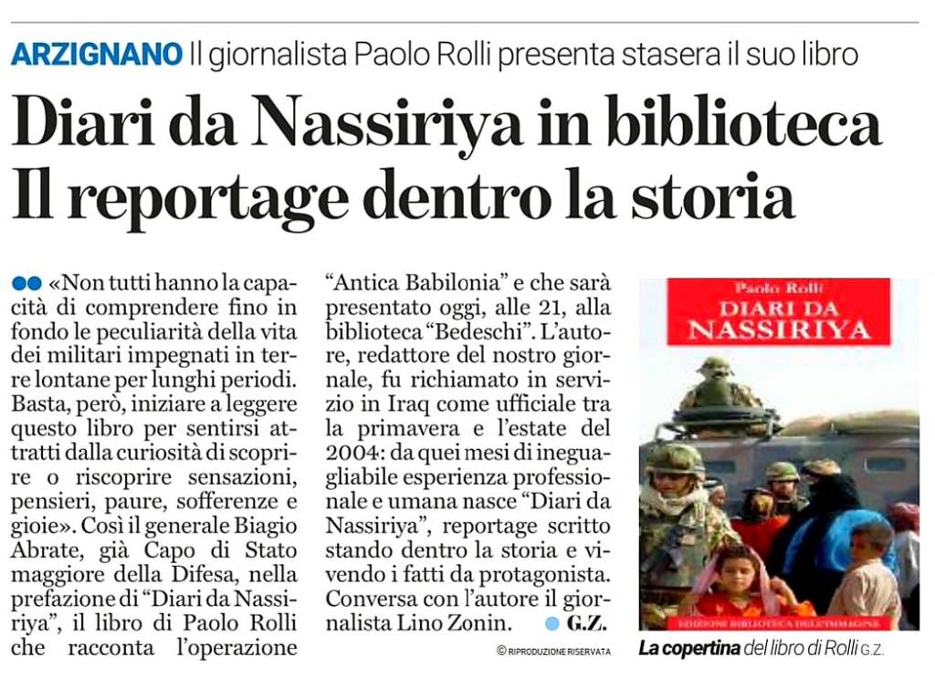 Giovedì 7 aprile, ore 13.30, Radio RAI Friuli-Venezia Giulia, Paolo Rolli parla del suo libro “Diari da Nassiriya” con Pietro Spirito nel programma “Lo spirito del tempo”